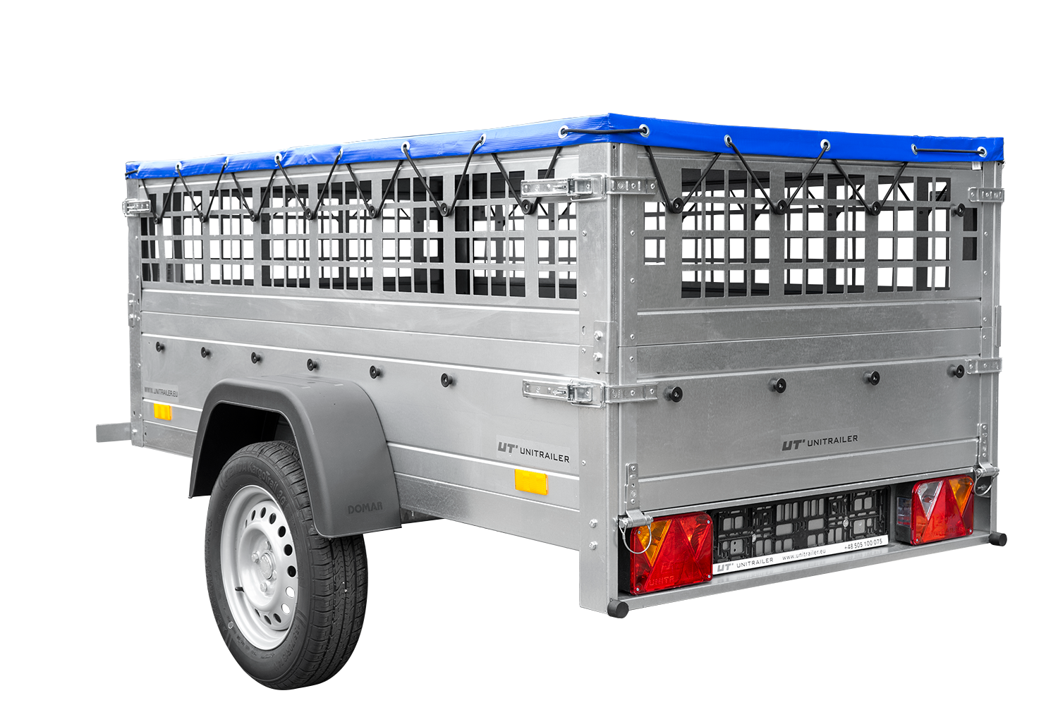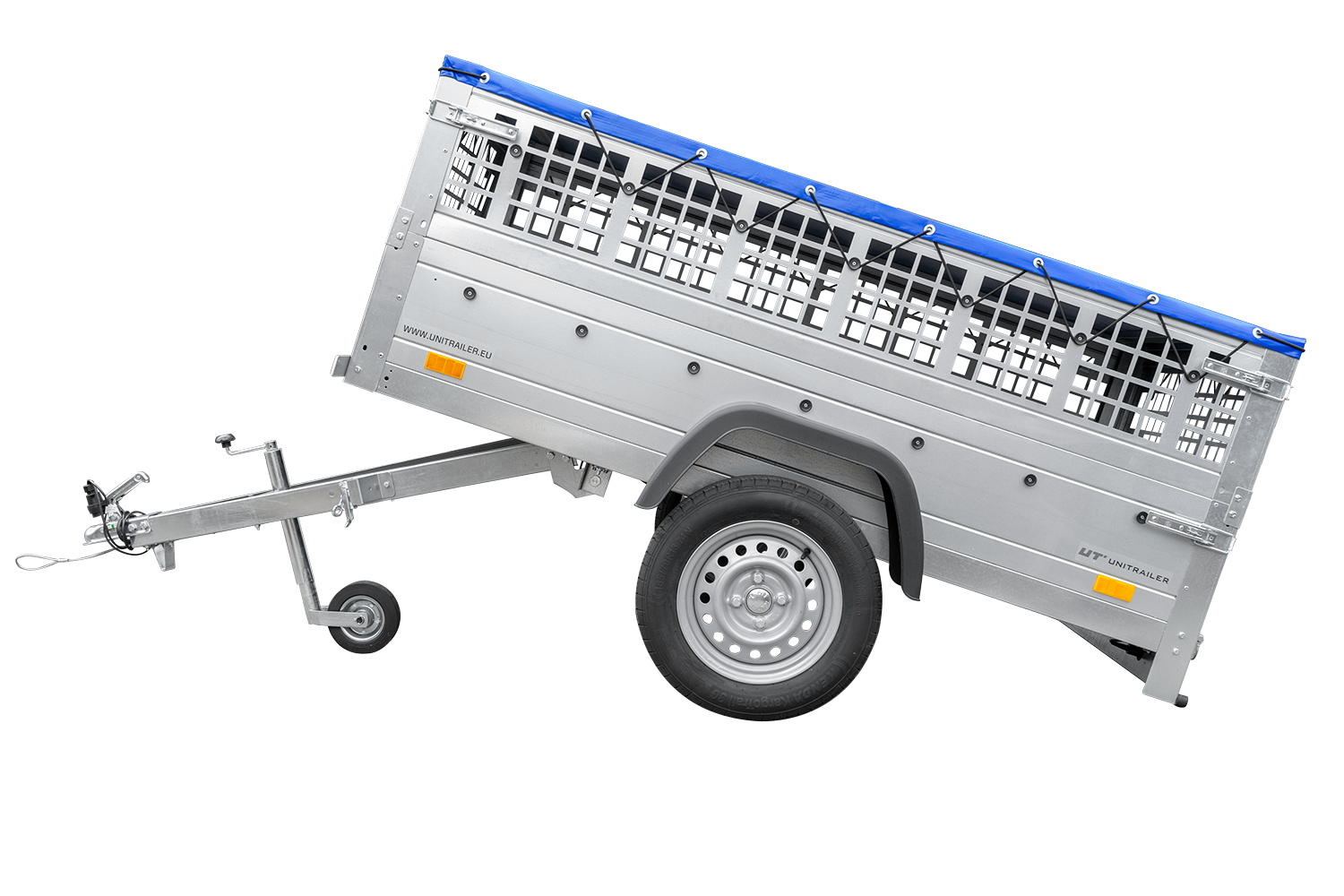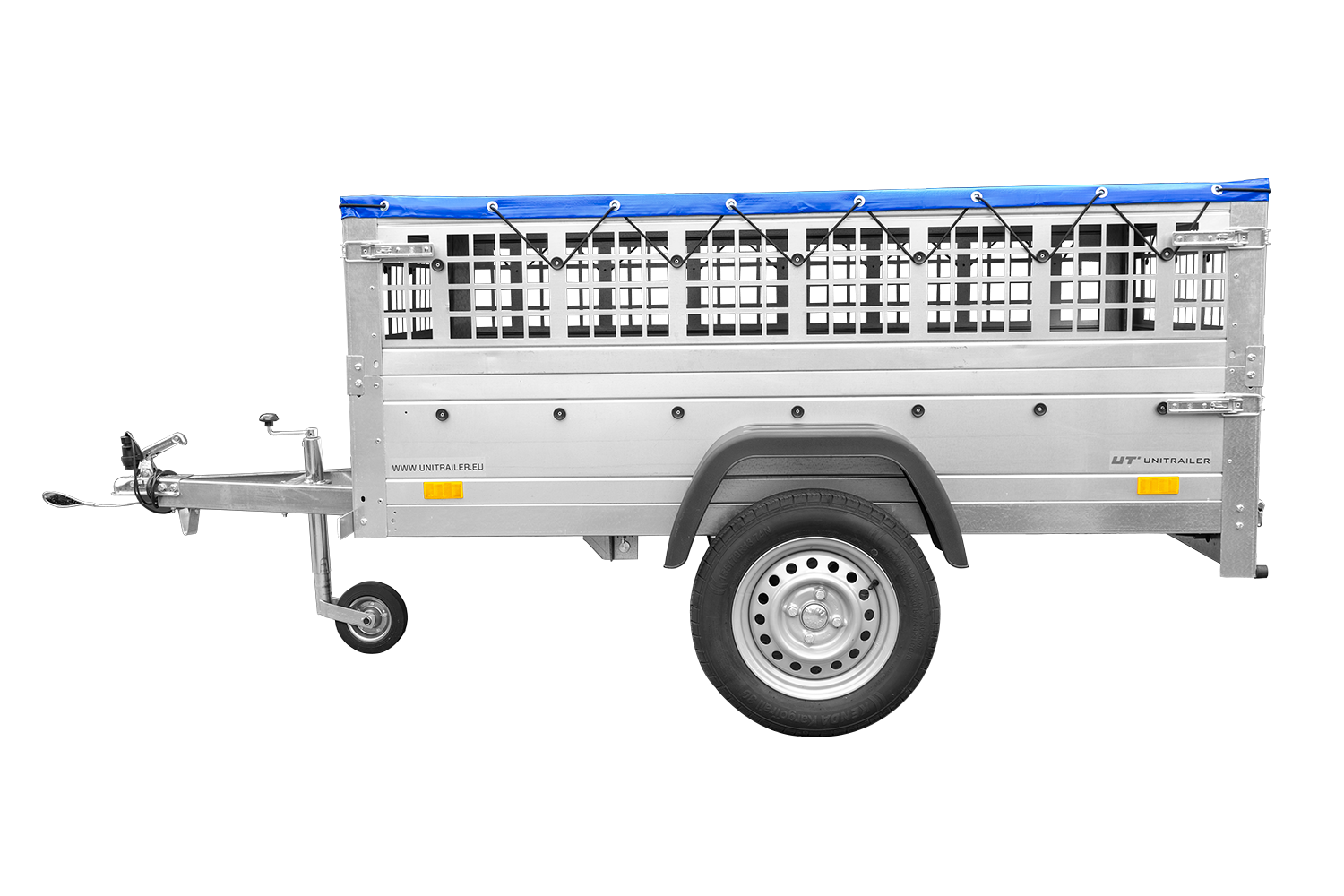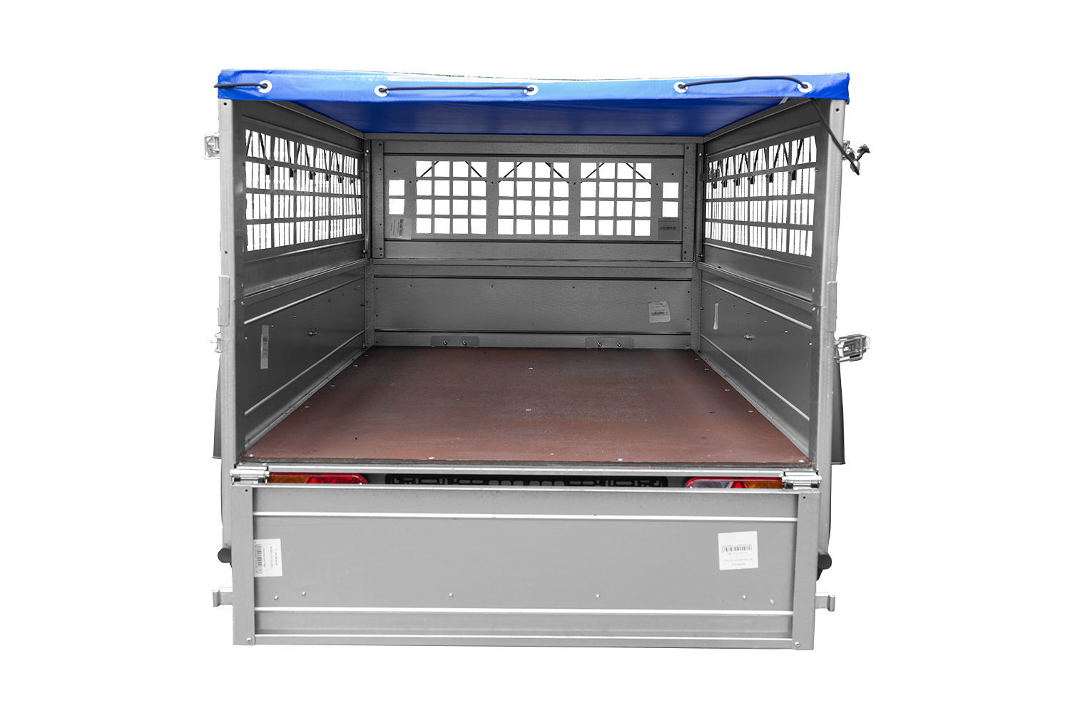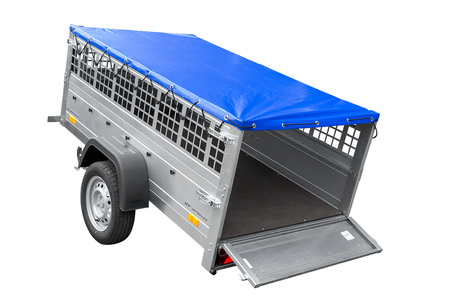 - Seitenwände mit Befestigungselementen, die ein ordnungsgemäßes Spannen der Plane ermöglichen. Heckklappe, die sich öffnen und vollständig abnehmen lässt.