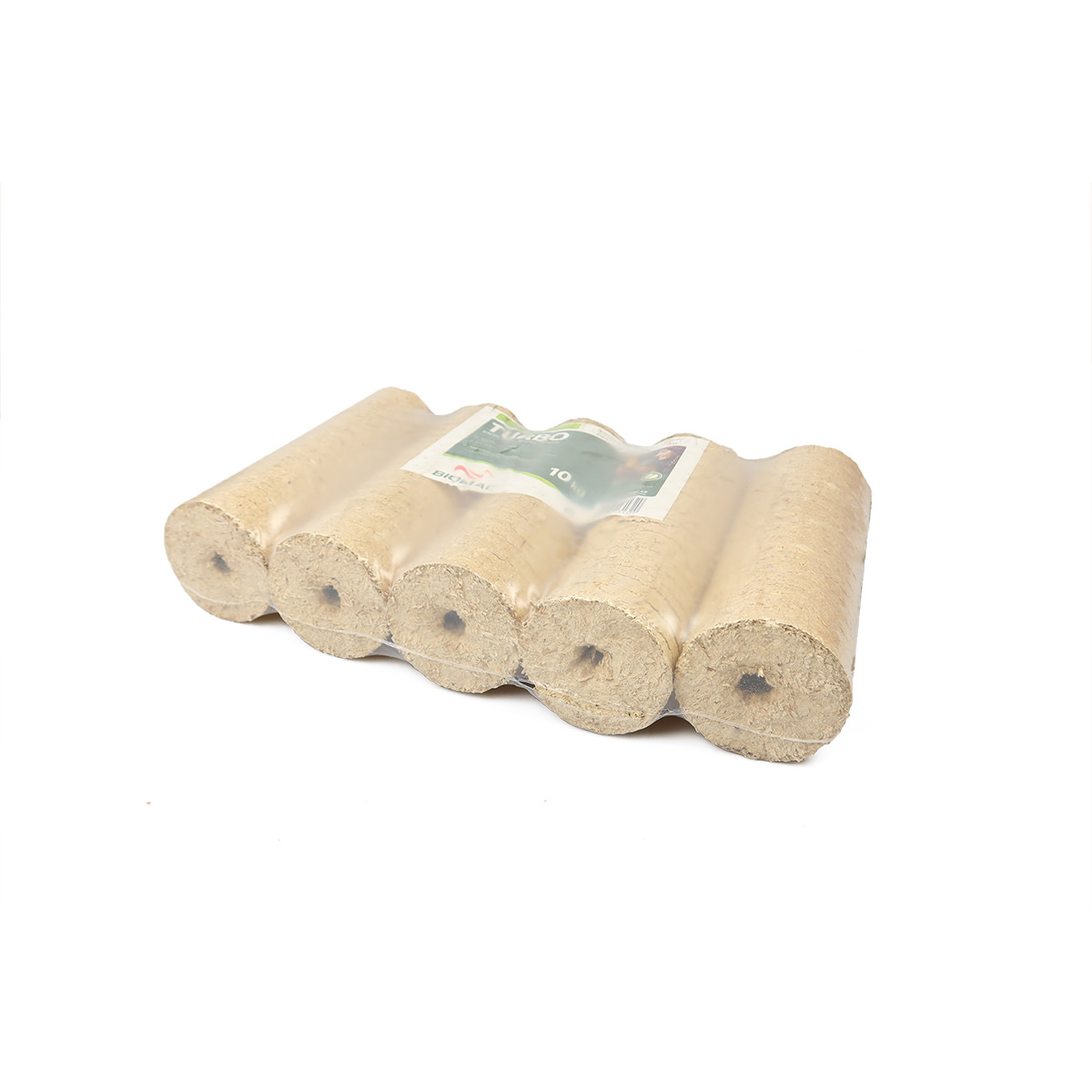 Die Nadelholzbriketts TURBO der Marke BIOMAC werden aus sauberem, rindenfreiem Fichtenholz hergestellt. Mit einen Durchmesser von 9cm sind die einzelnen Stangen sehr massig, lassen sich aber auch ganz gut zerbrechen und portioniern. Das Loch erleichtert das Anzünden und verbessert die Verbrennung. Die Briketts wurden mittels Briketttechnologie der Firma BIOMAC hergestellt. Wie alle runden Holzbriketts dehnen auch diese sich beim Abbrand aus. Bitte achten Sie beim Verbrennen auf diese Eigenschaft und lassen Sie den BIOMAC TURBO ausreichend Platz zum « Wachsen ». Eine optimale Ergänzung sind die Briketts BIOMAC EXTRA LONG. Die Rindenbriketts dienen als Gluthalter um für einen sehr langen Zeitraum konstante Teperaturen zu halten.