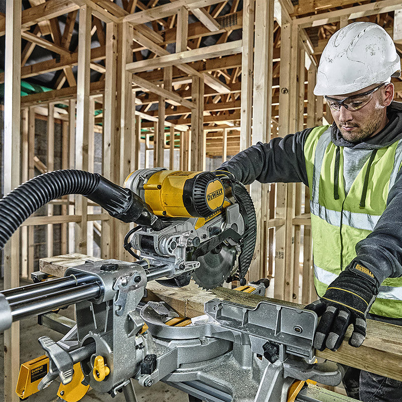 Produktvorteile der DeWALT DWS727 250-mm-Kapp- und Gehrungssäge