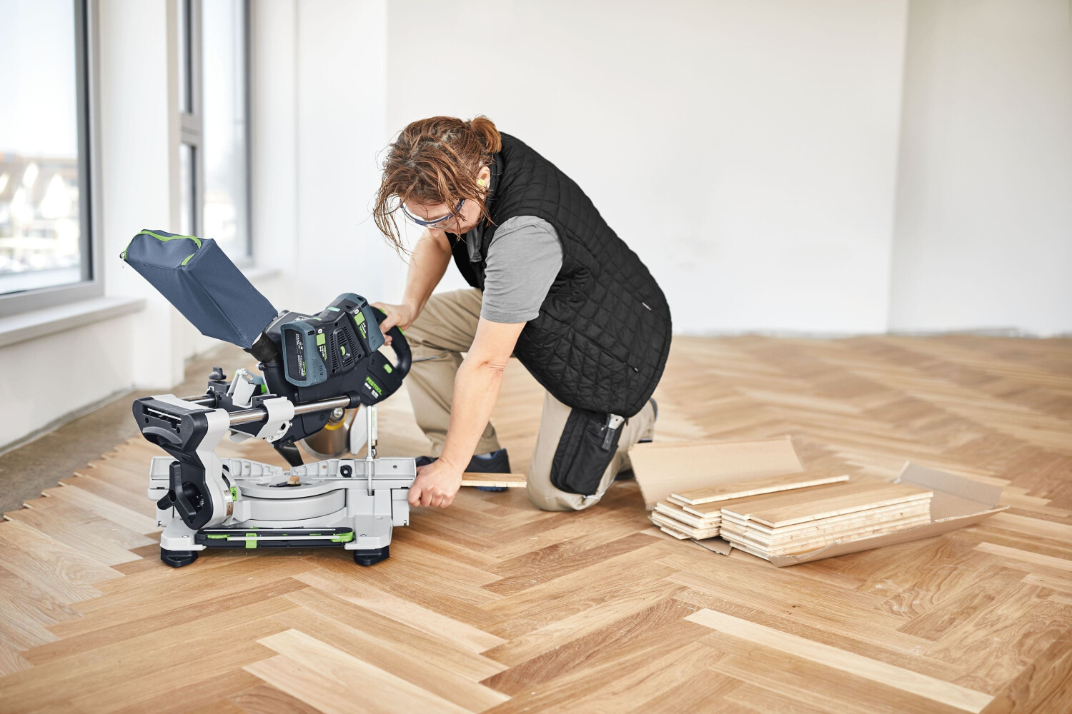 Die Akku-Kappsäge Festool KSC 60 EB 5,2 I-Plus Kapex vereint Kraft und Mobilität. Erleichtere dir die Arbeit, wohin auch immer deine Aufgaben dich führen.