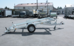 Kippbarer Autotransportanhänger mit 1 Achse und außenliegenden Rädern.