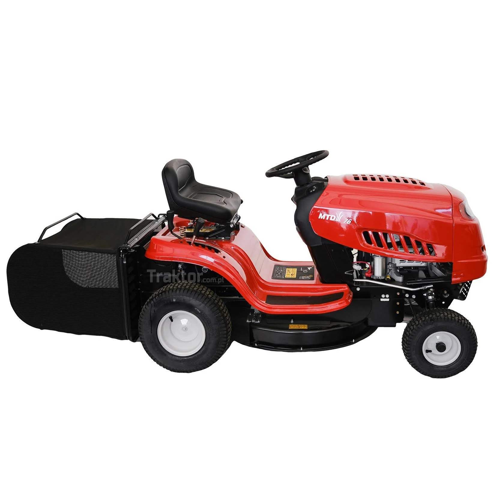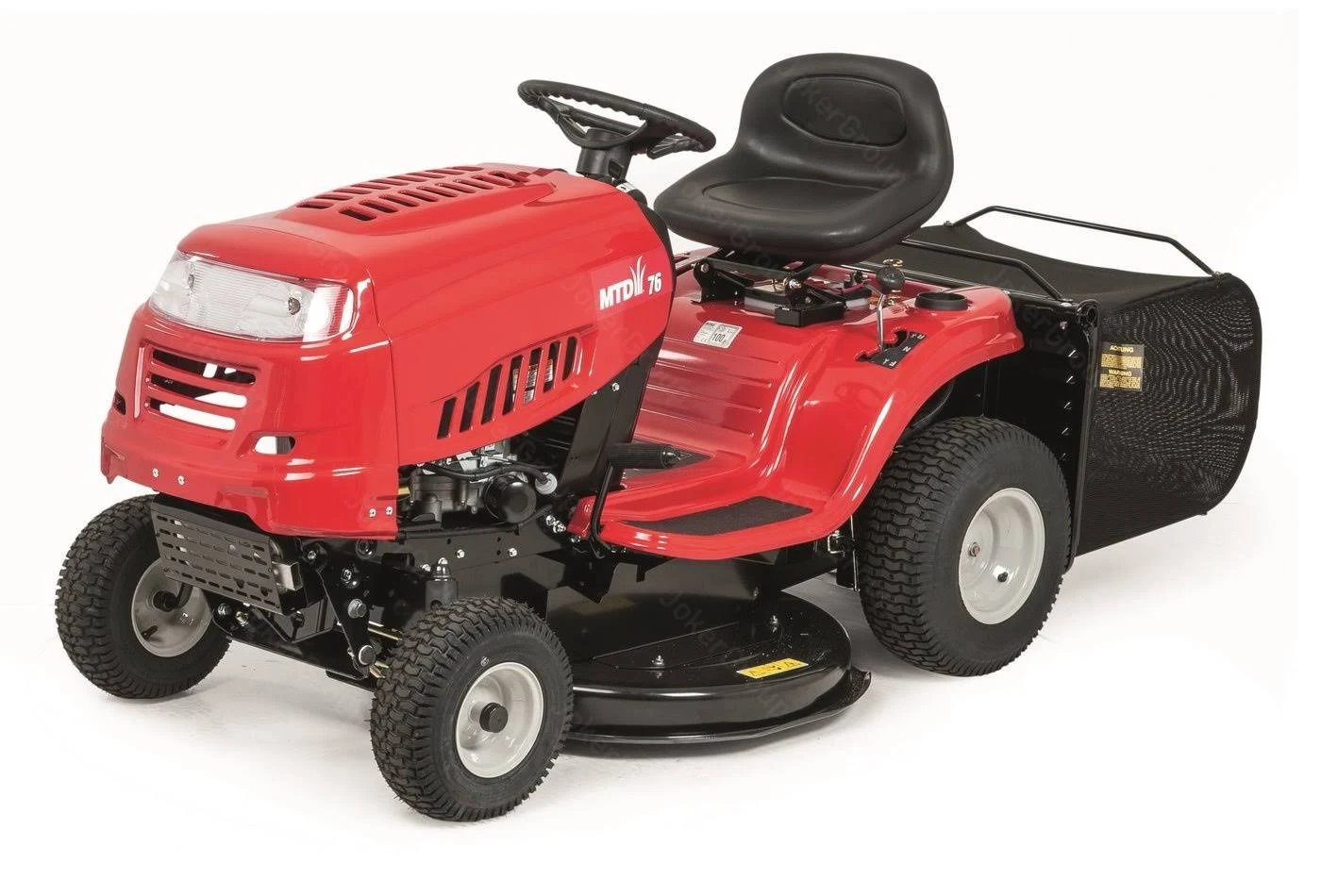 Die MTD-Einsteigerserie bietet grundlegende Features für die bequeme Gartenarbeit. Mit einer Schnittbreite von 76 cm und einem kleinen Wendekreis von nur 46 cm ist dieser Rasentraktor ideal für große Flächen bis 3.000 m² geeignet, wobei auch Bäume und Sträucher kein Hindernis darstellen. Der Motor lässt sich einfach per E-Starter anwerfen, bevor die Steuerung der Geschwindigkeit ganz komfortabel über die 6-Gang-Transmatic-Steuerung erfolgt. Genauso einfach lässt sich die Schnitthöhe an einem Hebel in fünf Positionen zwischen 30 und 95 mm verstellen. Im Lieferumfang enthalten ist zudem der 200 l-Fangsack, durch den der separate Arbeitsschritt des Einsammelns von Schnittgut entfällt. Auch der Heckdeflektor ist inklusive. Schließlich erweist sich das Frontlicht als nützliches Feature, durch welches das Arbeiten auch in der Dämmerung möglich ist.