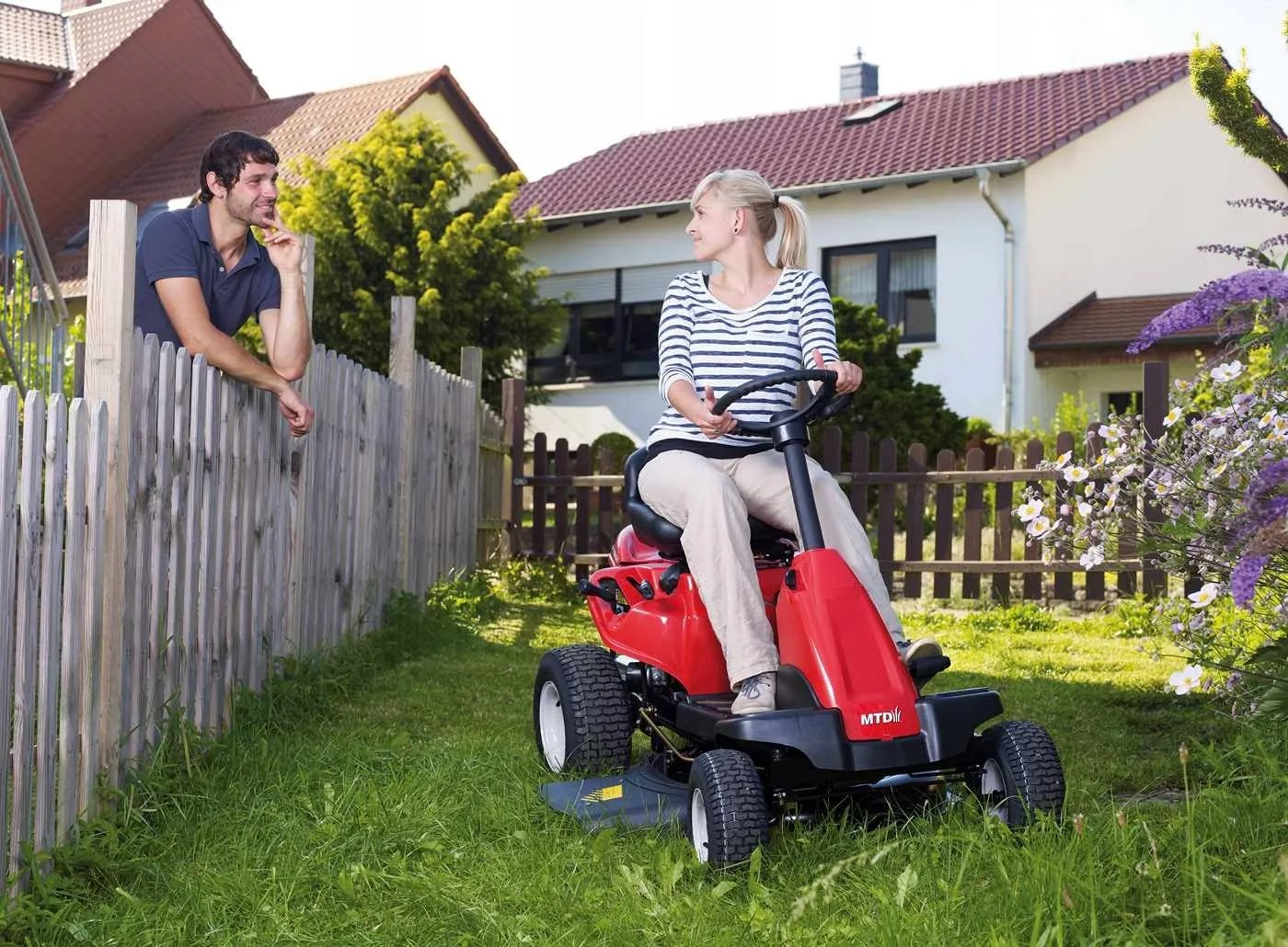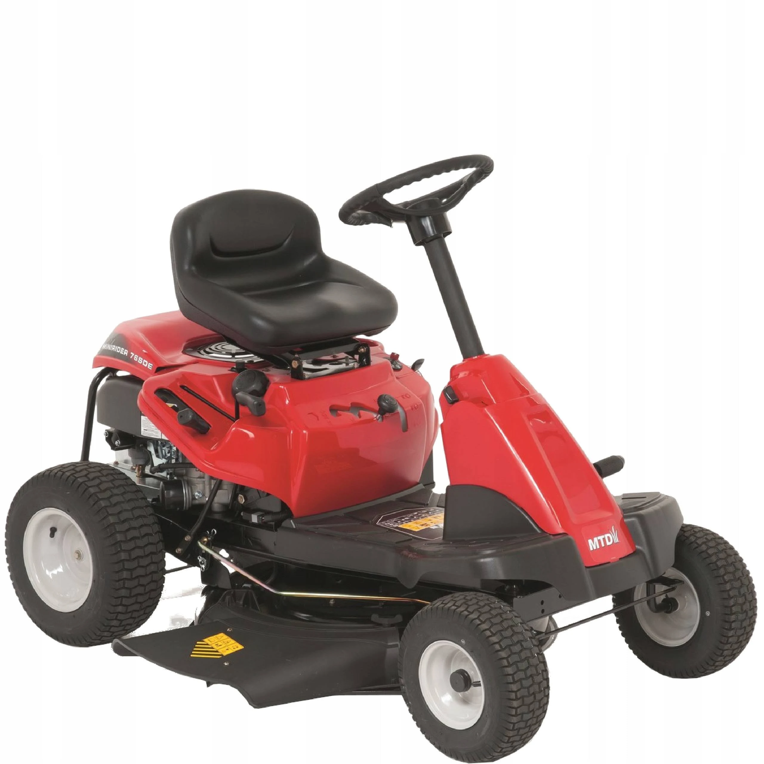MINIRIDER 76SDE, leistungsstarker MTD-Motor, 382 ccm E-Starter. und eine Schnittbreite von 76 cm. Es ist der Traktor, den wir für kleine Gärten empfehlen, mit einem Wenderadius von 46 cm. ermöglicht Ihnen den Zugang zu jedem Teil des Gartens, die Arbeit mit ihm ist sehr komfortabel und die Bewegung ist reibungslos, ein Gefühl, das den angenehmen Griff verbessert, von dem aus Sie den Traktor fahren können. Der Minirider-Mäher MTD Modell 76SDE verfügt über ein 6-Gang-Getriebe. Mit dieser Maschine können Sie auf jedem Gelände und auf jeder Oberfläche von bis zu 3.000 m2 arbeiten. Damit ist es einer der besten Rasenmäher für kleine Gärten.