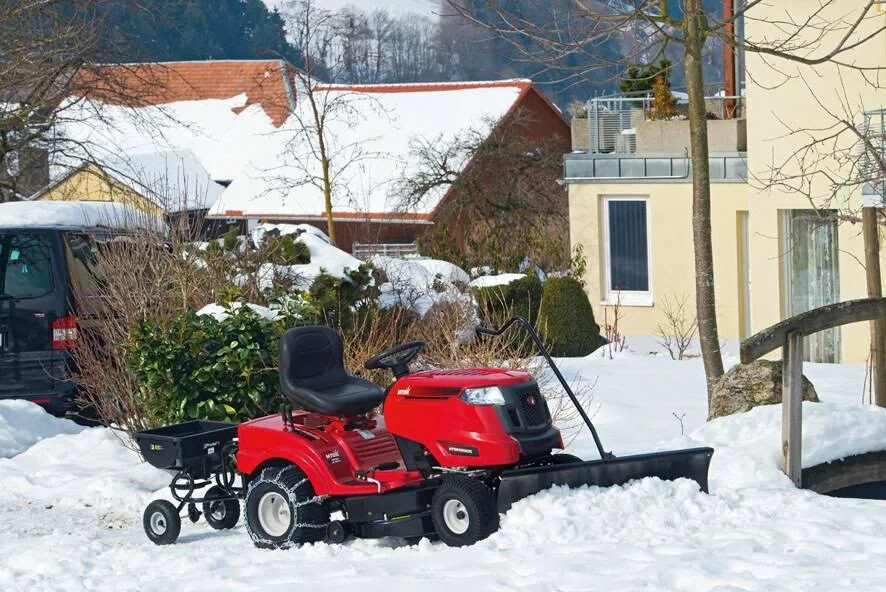 Husqvarna Frontmäher R 112C mit Mähdeck Combi 85 – Winterpaket mit Schneeschild, Gummileiste und Schneeketten – Modell 2023