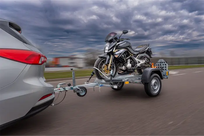 Kleiner Motorradanhänger für den Transport eines Motorrads. Unser UNITRAILER MOTO 1 ist ein äußerst praktisches Modell, ideal für den Motorradtransport. Wir haben einen Anhänger entwickelt, mit dem Sie Ihr Motorrad einfach verladen und transportieren können.